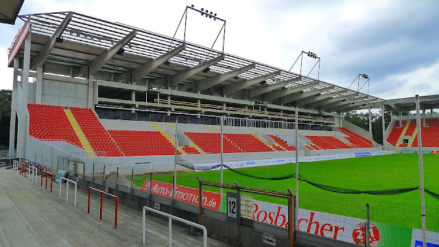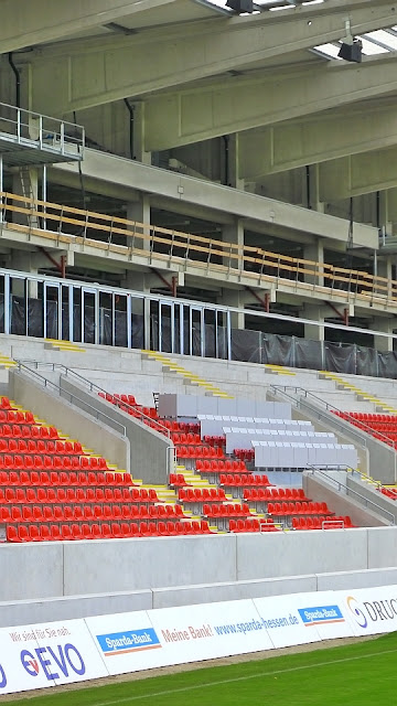 war heut in der Ostkurve, die Funzeln auf dem Dach sehen Mist aus, der Rest ist schon gut, wirkt aber irgendwie klein, von 30.000 auf 18.000 ?, sobald die Gegengerade fertig ist kann das schon was werden...Orion war heute sehr voll und sah gut aus, bei der Haupt vermisse ich dass Kickers und sieht wohl durch Logen auch kleiner aus, kommen Zäune/Glass vor Block 2 ? habt ihr dann "Mauerfahnen"